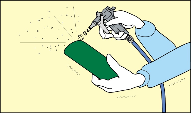 工程1: 製品組立時における除塵作業では、現状のエアガンではエアブローが弱く、強力化する必要がありました。